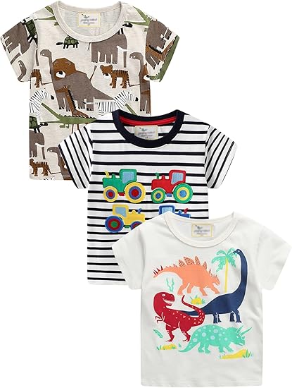 Boys Dinosaur T-Shirts Crewneck Short Sleeve Shirts 3-Pack Toddler Tops