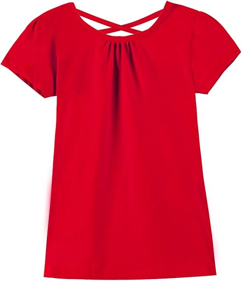 Girls Criss Cross Back T-Shirts Short Puff Sleeve Tee Tops (5-12 Years)