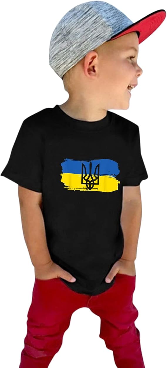 Toddler Baby Boy Girl Support Ukraine I Stand with Ukraine Ukrainian Flag T-Shirt Short Sleeve Tops Tees Peace Shirts