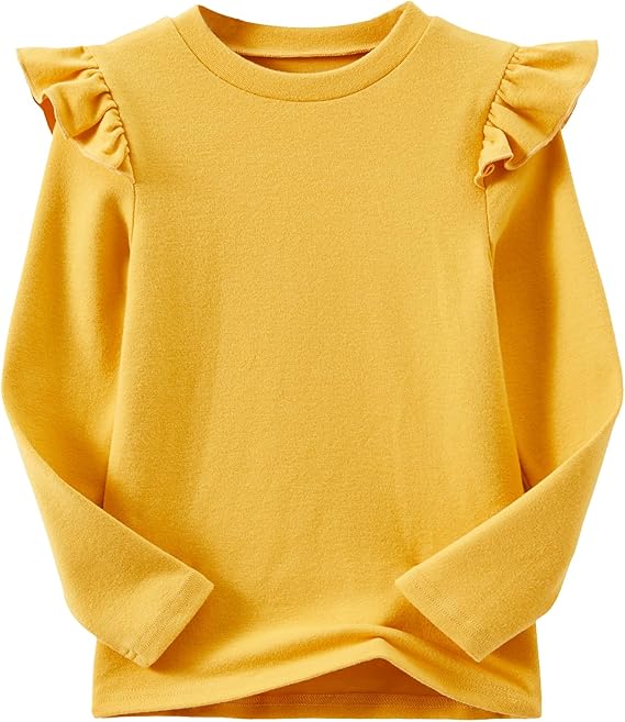 Girls Cotton Long Sleeve T-Shirt Toddler Comfort Soft Thick Basic Crewneck Tee Tops with Ruffles Trim