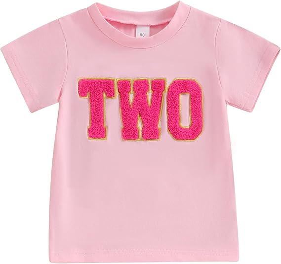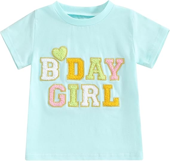 Kids Toddler Baby Girl Birthday T-Shirt Summer Short Sleeve Numbers Embroidery Tee Tops Birthday Outfit Gift 1-6T