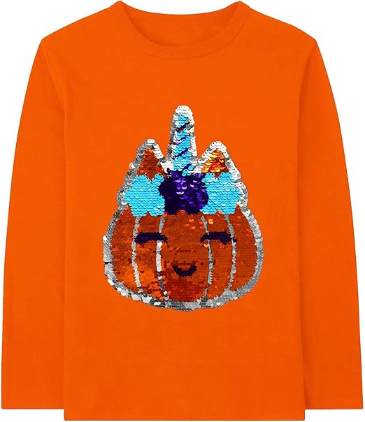 Toddler Girl Unicorn Pumpkin Halloween T-Shirt Long Sleeve Little Kids Flip Sequin Tops