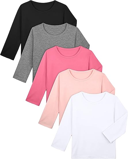 5 Pack Girls' Long Sleeve Tees Kids T-Shirts Soft Toddler Girls Crewneck T-Shirts