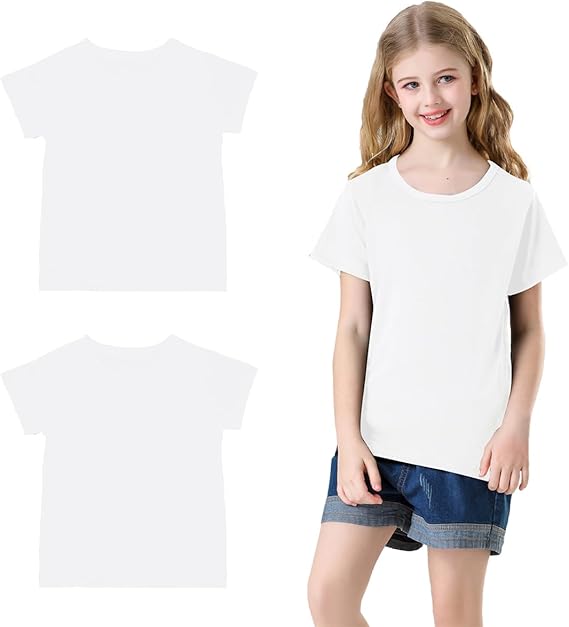 2 Pieces Kids Cotton T-Shirt Solid Color Short Sleeve Crewneck Basic Tops for Unisex Boys and Girls