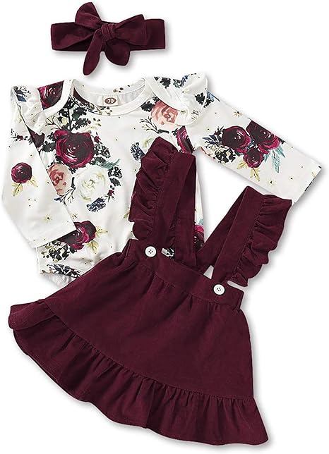 Newborn Baby Girl Clothes Toddler Long Sleeve Ruffle Romper Top Infant Skirt Set Little Girl Overall Dress