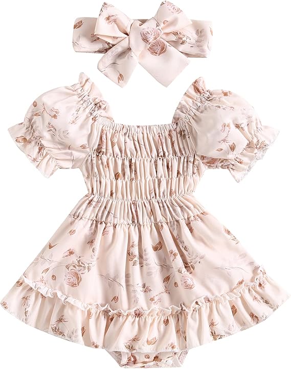 Baby Girl Summer Clothes Outfits Newborn Infant Floral Short Sleeve Romper Dress Cute Outfit