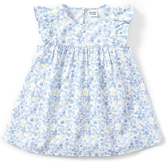 Baby Girl's Floral Dress Ruffle Sleeve Cute Playwear Round Neck Dresses